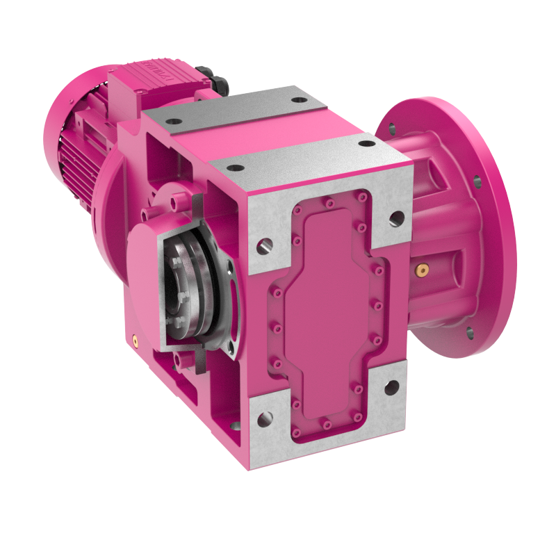 Helisel ve konik dişlilerden oluşan, giriş ve çıkış milleri birbirlerine dik konumlanmış, monoblok gövde üzerindeki ayak delikleri, çıkış flanşı veya tork kolu ile makineye montaj edilen redüktörlerdir